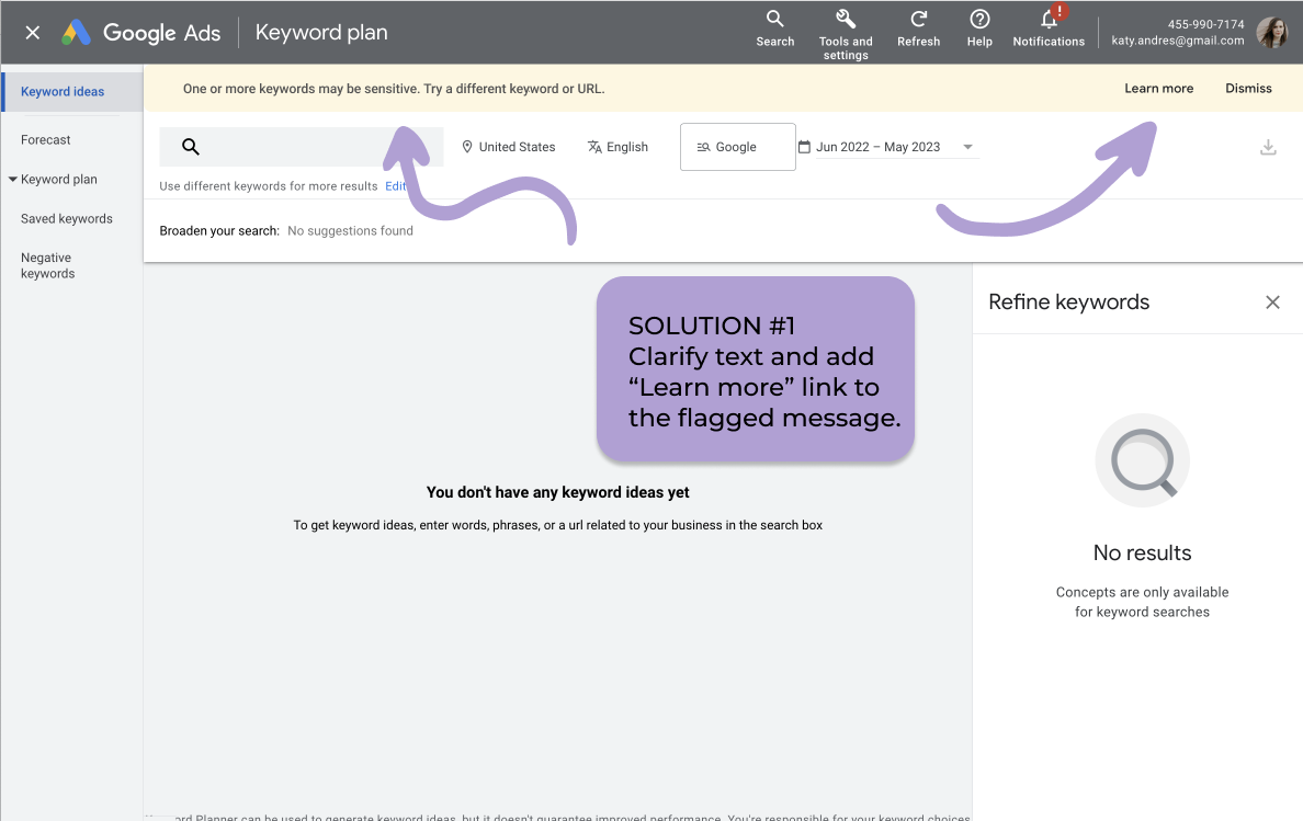 Because users with ill intent have tried to explore Keyword Planner, the tool over flags sensitive keywords